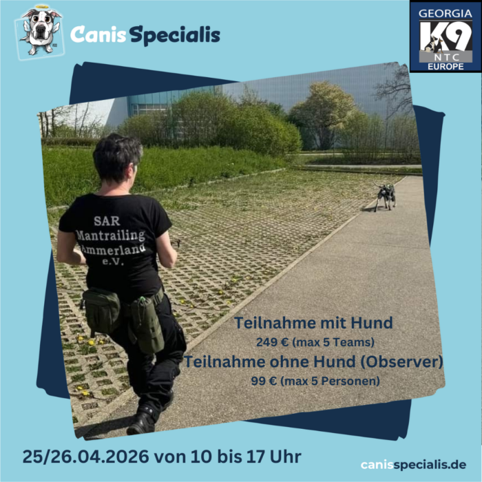 Anmeldung: canisspecialis@vodafone.de oder WhatsApp 0173-6273589